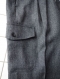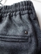 ウール中心のヘリンボーン柄にポリエステルそして麻を7%混ぜて作られた趣のある素材感を演出したベルトループ付きのイージーパンツとなっています。