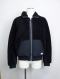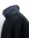 フロントZIPをやや大き目にし、ZIP がボアに巻き込まれないようにZIP回りに同色ポリエステル切り替え。立ち衿裏に至るまでポリエステル仕様。