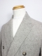 霜降りベージュの奥行きのある生地を肩パット無し、芯無しのアンコン仕立てに仕上げた美しいピークドラペルのジャケットとなっています。