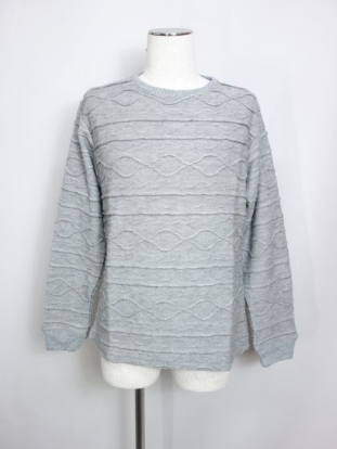 生地全体にボーダー状にタックを取り立体的な膨れ織りを波のように表したカジュアルなセーターです。
