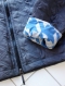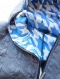 裏地にモクグレイのTシャツ素材にブルーの千鳥柄をプリントしたインパクトのある仕様が目を引きます。