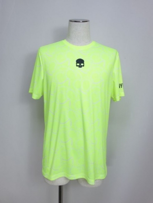 蛍光イエローカラーの生地全面にライトグレイカラーでテニスボールを描きテニスボールの縫い目をHYDROGENロゴで仕上げた遊び心いっぱいのグラフィックが面白いTシャツです。