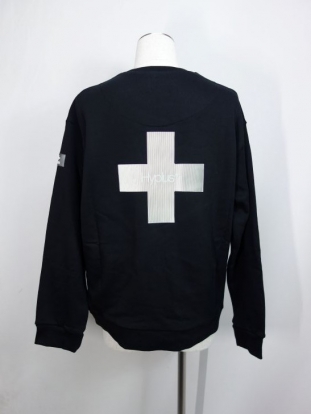 左袖、上腕部にもワンポイントオリジナルタグを配し、右裾にHYPLUSの小さいシルバープリントが粋なトレーナーとなっています。