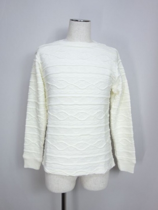 生地全体にボーダー状にタックを取り立体的な膨れ織りを波のように表したカジュアルなセーターです。