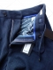 ウエスト帯部分にはベルト無しでも着用できるよう同色ドローコードを配し、ドローコードの先にもメタルを配したラグジュアリー仕様となっています。