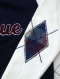 同色系のひし形アーガイルチェックのエルボーパッチをパッチワーク。胸にはVIDUEのロゴをリブカラーに合わせた色でループ刺繍。