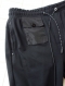 ウエストはゴムシャーリング+白色P.M.D.Sロゴのゴムのドローコード仕様。脇の切り替えを利用した黒リベットをカンヌキ代わりに使用した縦ポケット。ウエスト右前には黒のポリエステル生地のフラップ付きのコインポケット付き。