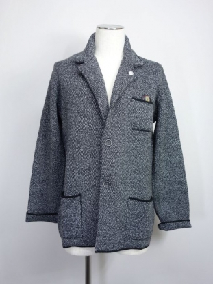 ウールにアクリルを混ぜて作られた黒×白のミックスカラー。一見、チャコールグレイに見える黒×白の霜降りカラーのニットジャケットです。