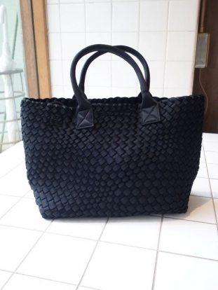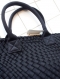 黒の光沢のあるひも状のポリエステルをバイアス(斜め)メッシュ編みに編み上げられたミニトートBAG です。