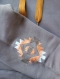 両袖口、カフスリブの上あたりにオレンジ×白の幾何学模様のひし形刺繍を配し、フロントにはカンガルーポケットのイタアメリカン仕様の一品となっています。