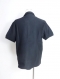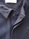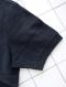 フロント釦は比翼仕立ての隠し釦仕様。左胸にシンプルに黒の小さいラバープリント。首後ろに内側より台形のヨークを配した仕様もお見事。