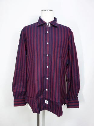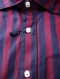 ワイン×紺の玉虫カラーに紺ストライプのダンディカラーの太ストライプが粋なレギュラーカラーのシャツです。