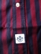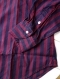 平織りワイン×紺の糸で仕上げられた表面効果のある生で紺の1.2㎝巾のロンドンストライプのシャツです。