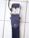 ネイビーカラーの本体にベルトの先にもネイビーのスウエードレザーを使用しバックル取り外し部分やベルト留め(サルカン)もネイビーのスウエードレザー。