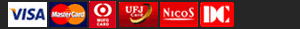 VISA、 MasterCard、MUFGカード、UFJカード、NICOSカード、DCカード