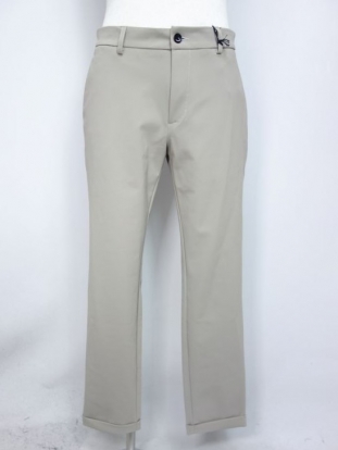 斜めポケット、後ろ両玉ブチポケット。ノータック、膝下テーパードさせた美しいシルエットが秀逸です。