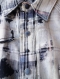黒pベースの大柄チェック生地の中に大きな赤のウィンドペンを施したタータンチェック柄をイタリア職人によるハンドブリーチ加工をムラ染め脱色したロックティストなウエスタンシャツです。