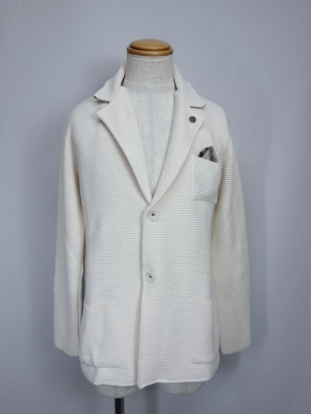 ウールにアクリルを混ぜて作られた着やすいカーディガンのように羽織るタイプのニットジャケットです。