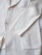 長方形の3パッチポケットを配し左胸ポケットにはアクセントのポケットチーフを配置。アクセントのある釦も◎。