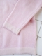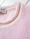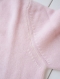 そのため、編み地テンションの違う首元、そで口、裾口は薄ピンク。全体にベビーピンクの中、かすかに薄ピンクに染まった染め分け具合が絶妙な一品です。