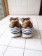 踵のネービー×白の三本ラバー+キャメルカラーのレザーが良き配色。上品極まりない一品に仕上がりました。