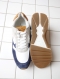 ベースは白のポリエステルを使用し、アイスベージュのスウエードとネイビーカラーのスウエードで絶妙な配色。