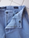 サックスブルーにライトグレイを混ぜたようなアイスブルーカラーが肉厚のツイル素材に良くマッチした一品となっています。