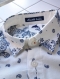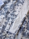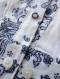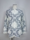 綿100%のオフ白の表面を起毛させた暖かみのある生地に紺色のパネル柄のペーズリーをスカーフ風にプリントしたシャツとなっています。