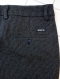 黒ベースにグレイのピンチェック柄、表面を暖かみのある起毛仕立てにしたあたりも秀逸です。股上をやや浅めにし、ウエスト内側にドローコードを配した上、ベルトループも付けたドレス仕様。
