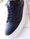 革表面にシワのあるシュリンクレザーの黒革を使用したストライプの凹凸のある肉厚ホワイトソールを使用したBIGフットの大人のスニーカーに仕上がりました。