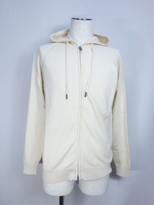 テンセルにウールそしてシルクを5%加えて作られた非常に柔らかみとドレープ性を兼ね備えたハイゲージニットのフルZIPパーカーです。