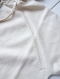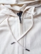 袖付けはラグラン袖にし、美しいリンキングデザインの中に1㎝巾の天竺裏編みをストライプ状に使用し無地の中にも味のある大人のデザインが目を引きます。フロントZIPは上下開閉のWZIPを使用し、フードのドローコードの先にもメタルを配した先まで洗練された作りが◎です。