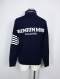 フードのドローコードも黒×白にP.M.D.Sロゴプリントのオリジナルゴムのドローコード。左袖には5本ラインを配し、背中には大きくPREMIUM MOOD MARINをニットジャガードで編み込んだバックロゴも秀逸。