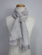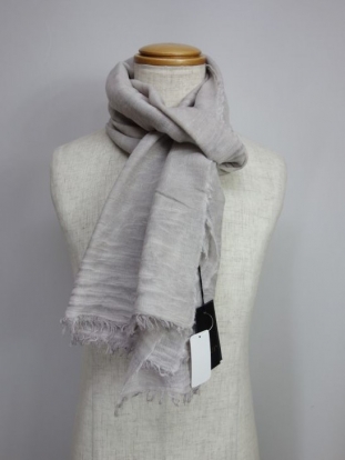 ウールに綿を混ぜて作られたグレイベージュにややピンクの色合いを混ぜた楊柳加工のシワ感のあるお洒落なストールです。