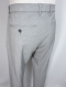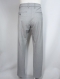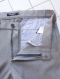 フロントに紺×白のベルトピン留めを付けたノータックのストレッチパンツ。