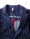 肩パット無し大見返しのアンコンジャケットの3つ釦仕様で内側背中の大見返し部分にはLAURA FELICEのロゴ入りプリントと赤×白×紺のトリコロールテープによるハンギングループが若々しさいっぱいのカジュアルジャケットに仕上がりました。