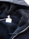 裏全面に暖かいポリエステルの黒色のボアを配し、袖口、裾リブ仕様の暖かいフーテッドブルゾンとなっています。