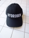 綿100%のツイル素材の黒でフロントに立体的なHYDROGENロゴの膨らみのある白刺繍を施したインパクトのあるCAPです。