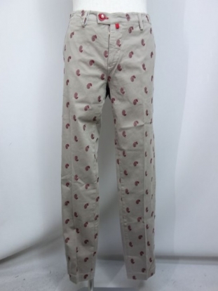 イタリアの伝統的ペーズリー(イタリアではペーズリーは守り神としていろいろなテキスタイルに使用されていま)柄をストレッチチノパンツに配した拘り用はまさにイタリアのダンディズム。