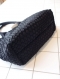 黒の光沢のあるひも状のポリエステルをバイアス(斜め)メッシュ編みに編み上げられたミニトートBAG です。