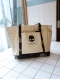 机の上に置いても崩れない20㎝巾のマチを底に配した船形のトートBAGとなっています。