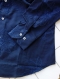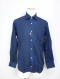 綿100%の細かいネイビーカラーの生地に太い糸で大柄花柄(直径13㎝)を生地全体に特殊刺繍したシャツです。