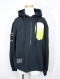 左胸には蛍光キミドリのフューチャー型ワッペン。両袖上部にナンバーリングとオリジナルロゴの立体的なワッペン。左裾に白色で筆記遺体刺繍とバランス良く装飾されたカレッジワッペンが◎のスウエットパーカーです。
