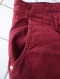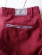 フロント左前上部に紺×赤のセルビッチカラーのグログランテープによるコインポケットを配し、後ろ右ポケットにも同様のテープ使いで補強+アクセントの良きデザインとなっています。
