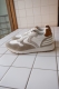 ベースは白のポリエステル。ベージュカラーのスウエードとコンビネーションさせた上品な色合いが◎です。