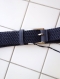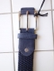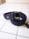 ネイビーカラーの本体にベルトの先にもネイビーのスウエードレザーを使用しバックル取り外し部分やベルト留め(サルカン)もネイビーのスウエードレザー。